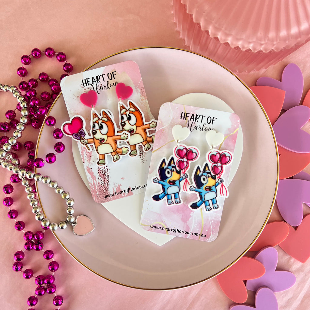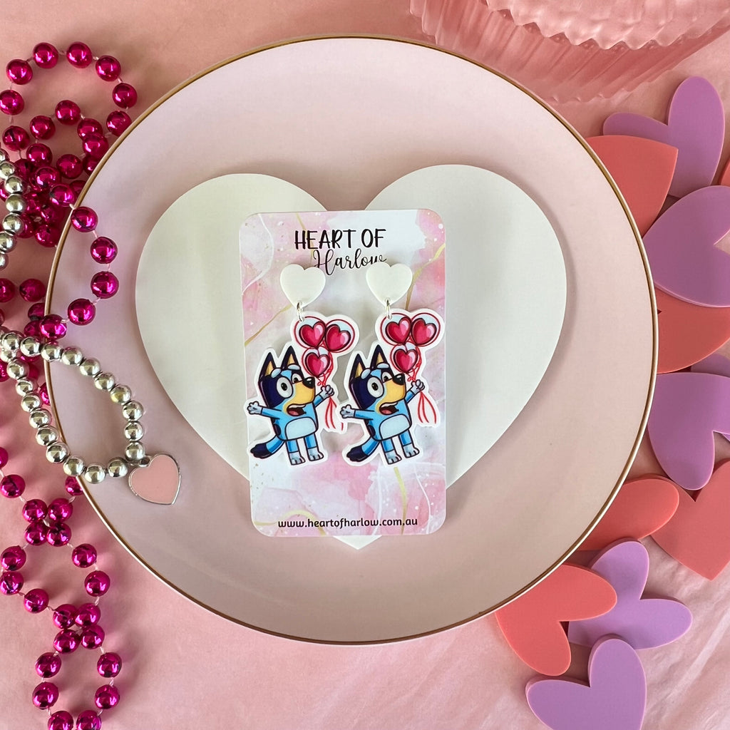 Aussie Blue Dog Heart Dangle Earrings
