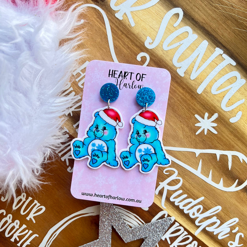 This listing is for one pair of Blue Christmas Bear Dangle Earrings