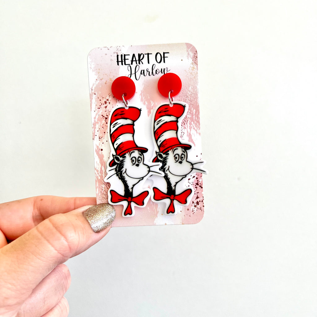 This listing is for one pair of Cat Hat Head Dangle Earrings