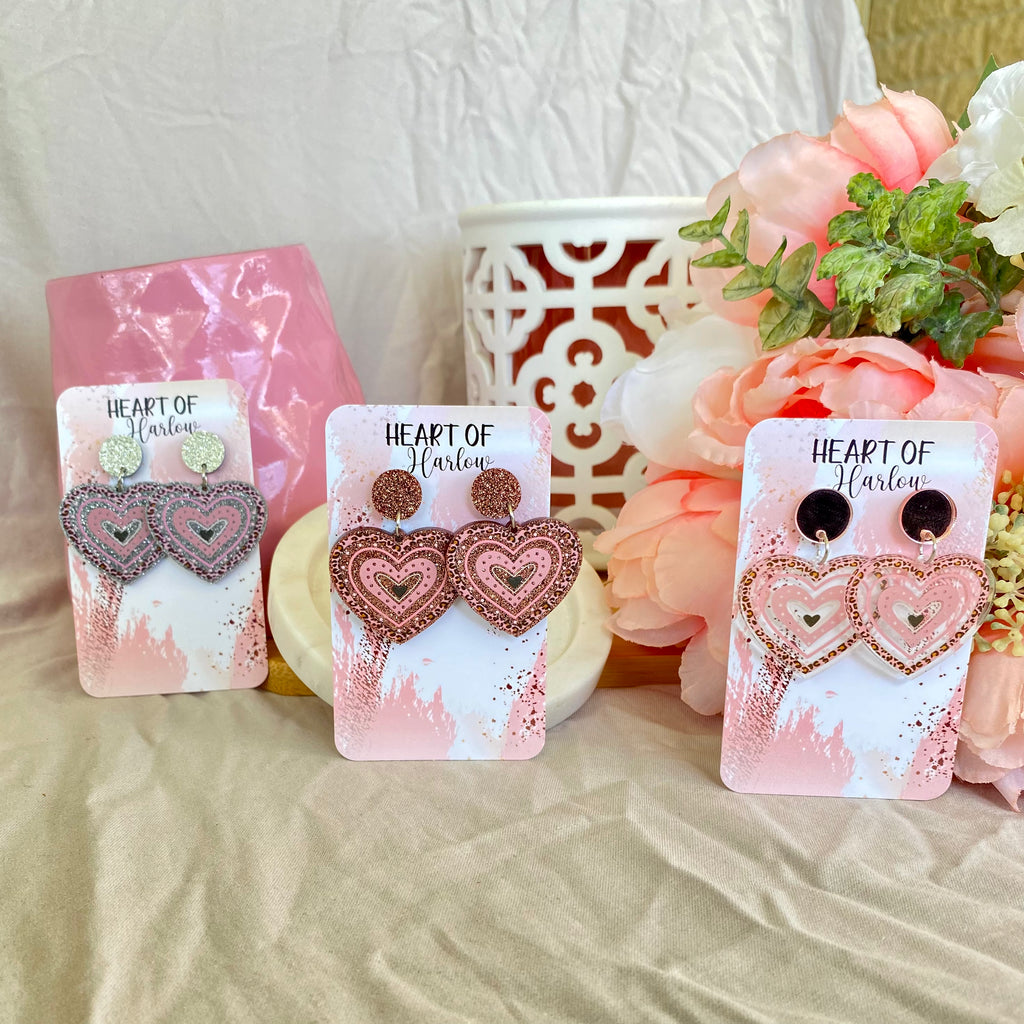 This listing is for one pair of Transparent Leopard Heart Dangle Earrings