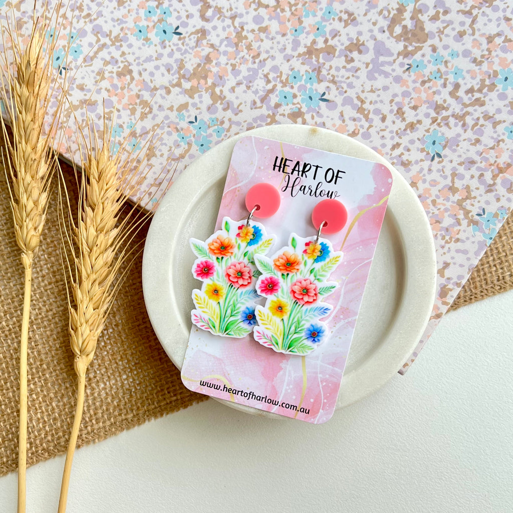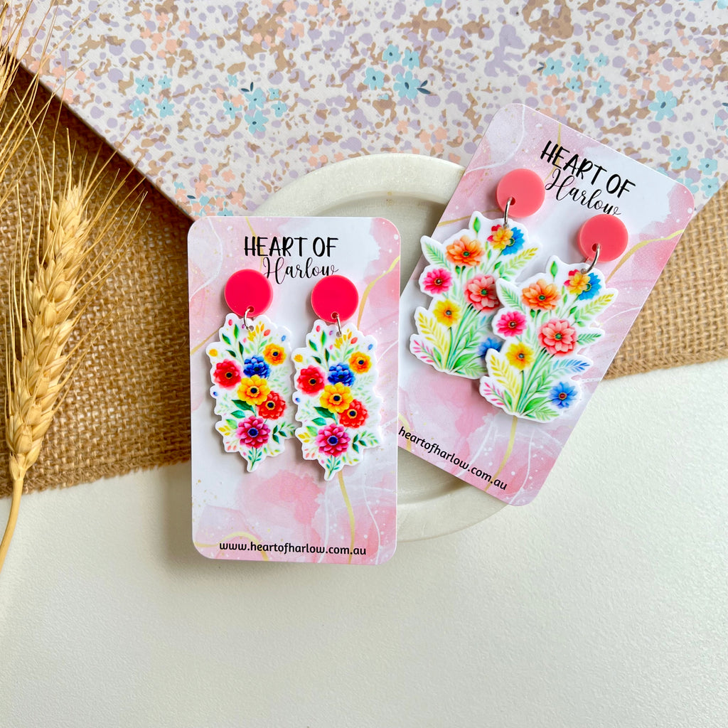 This listing is for one pair of Colourful Flower Bunch 2 Dangle Earrings