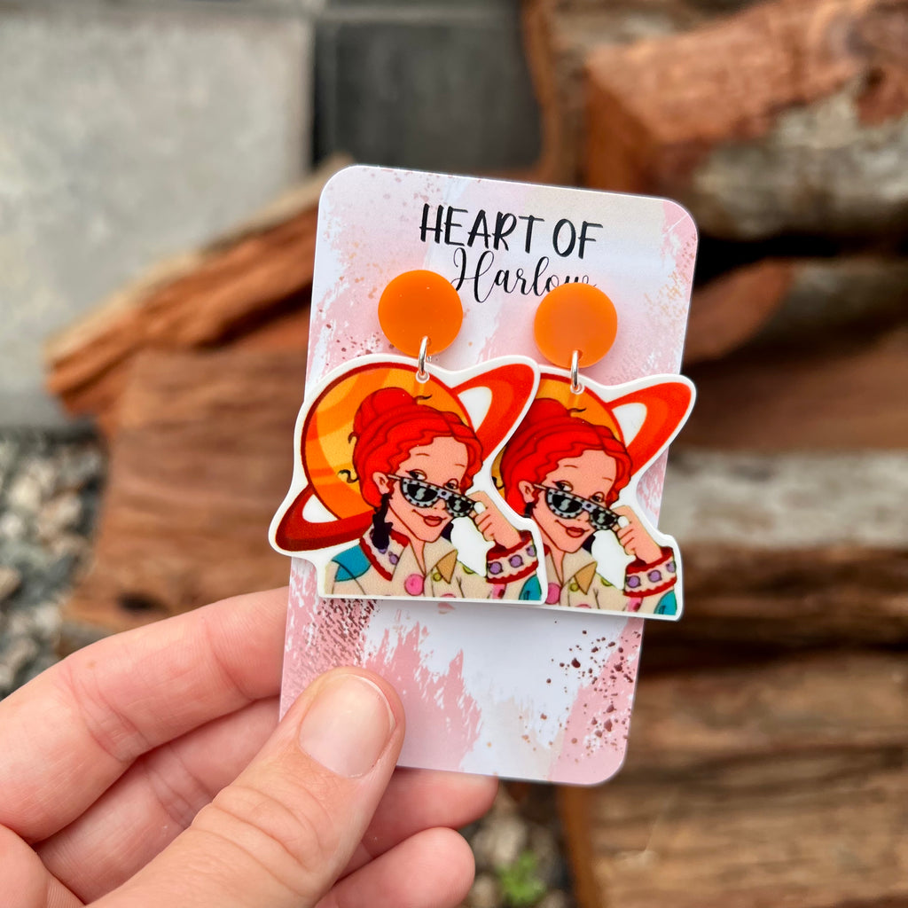 This listing is for one pair of Frizzle Space Dangle Earrings