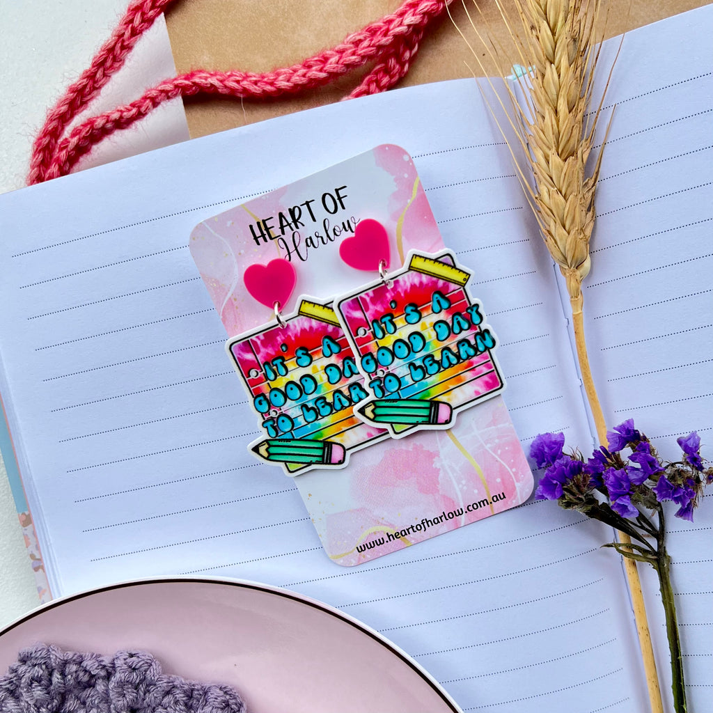 This listing is for one pair of Good Day to Learn Dangle Earrings