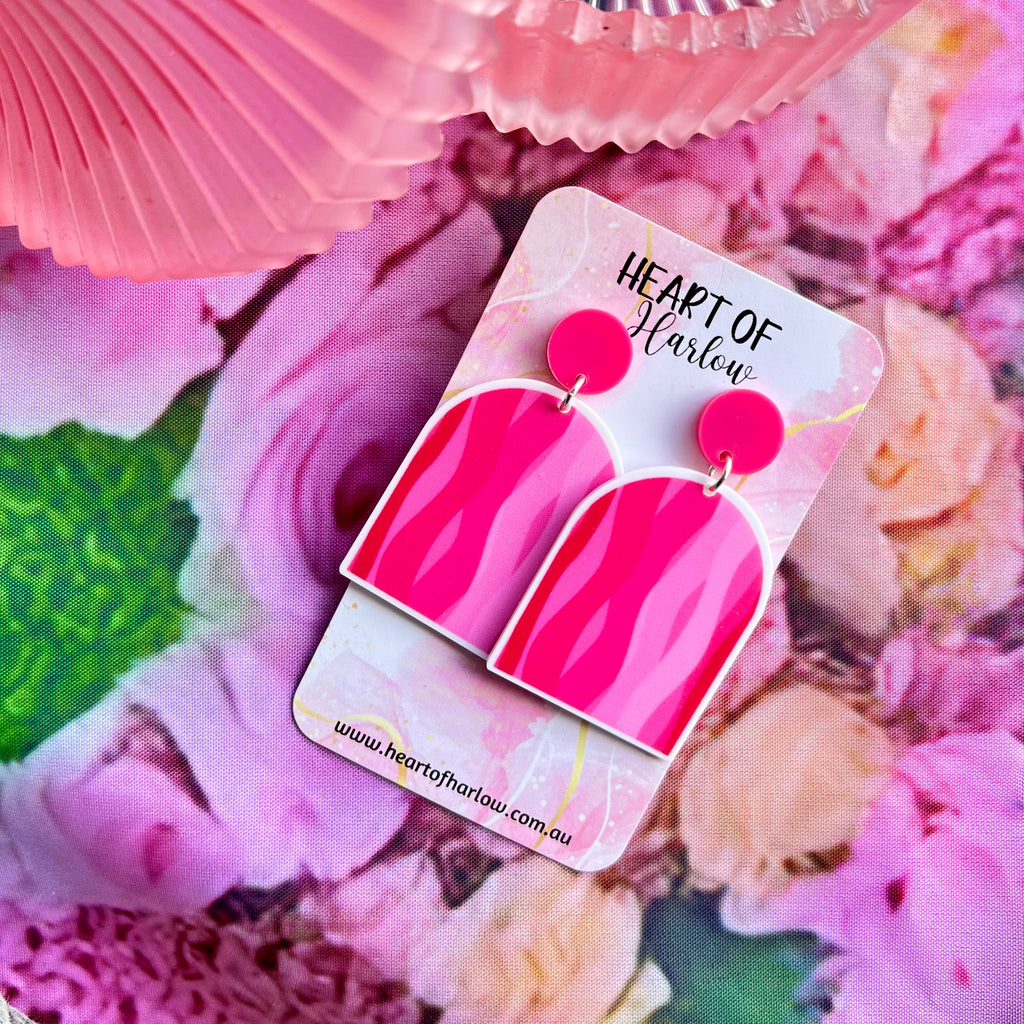 This listing is for one pair of Pink Swirl Arch Dangle Earrings