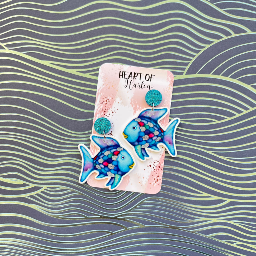 This listing is for one pair of Rainbow Fish Dangle Earrings