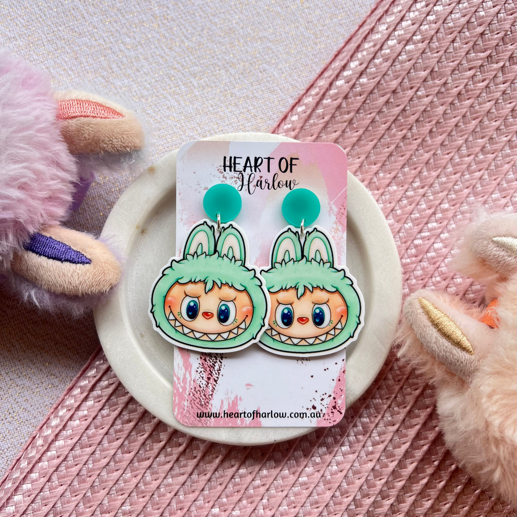 This listing is for one pair of Teal Furry Friend Dangle Earrings